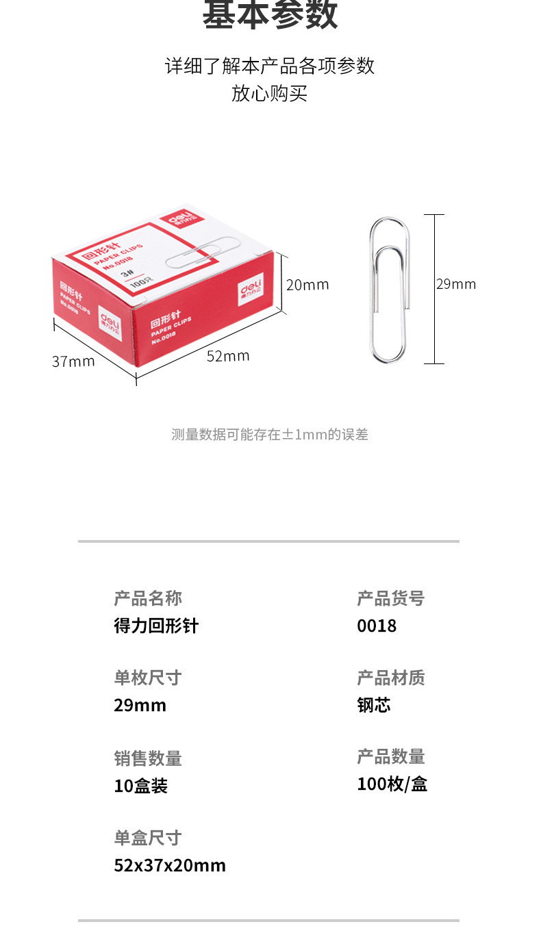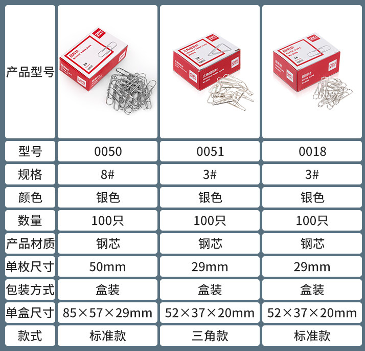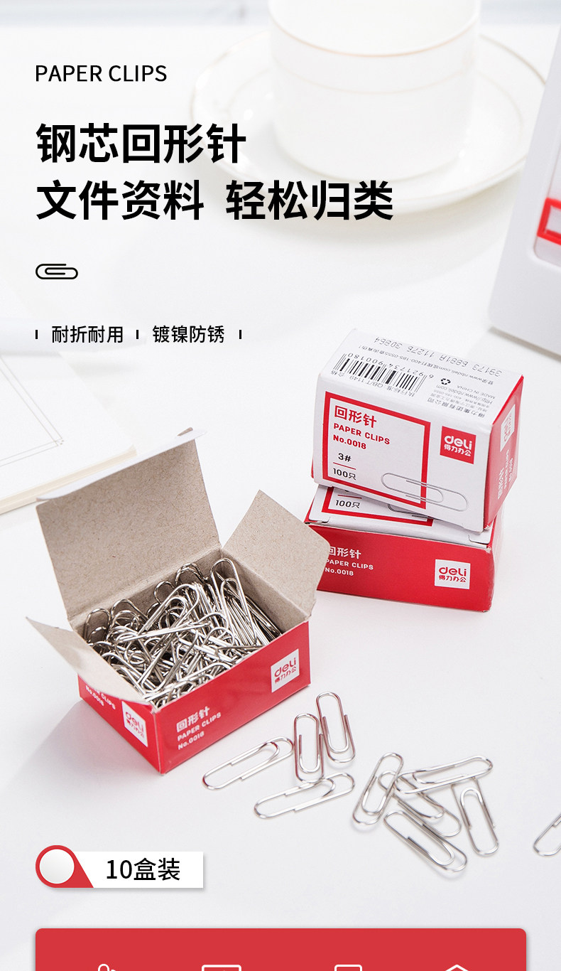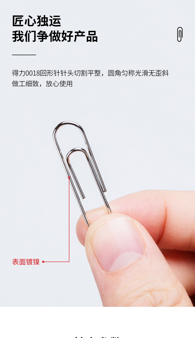 【10盒装】得力银色金属回形针曲别针财使用品办公使用 经济实惠型0018