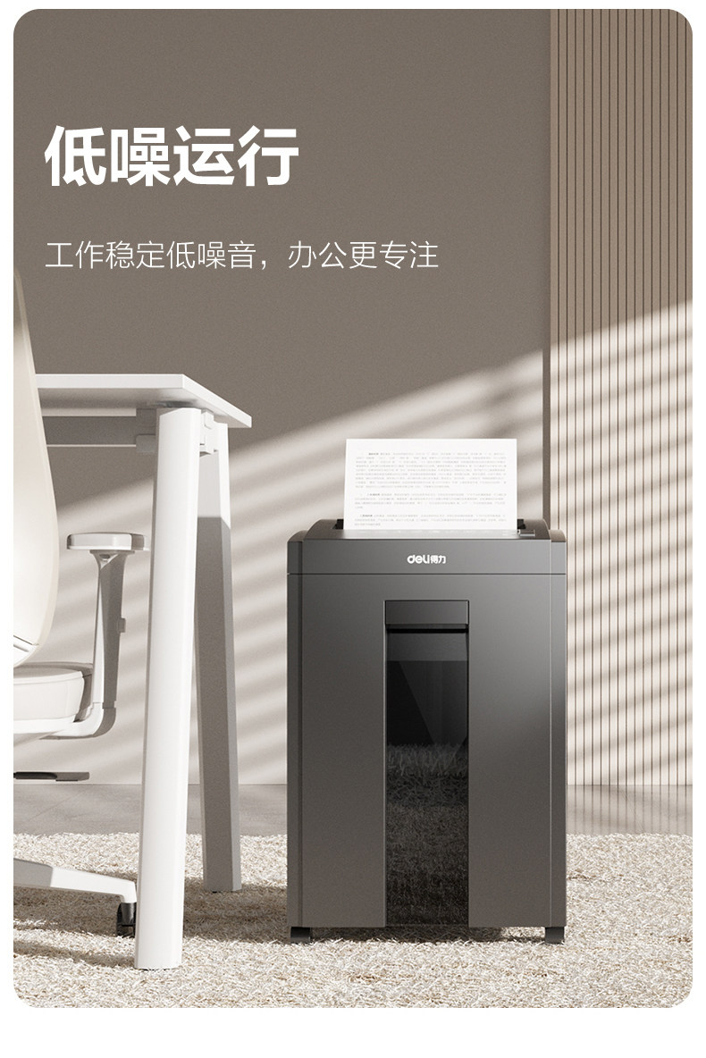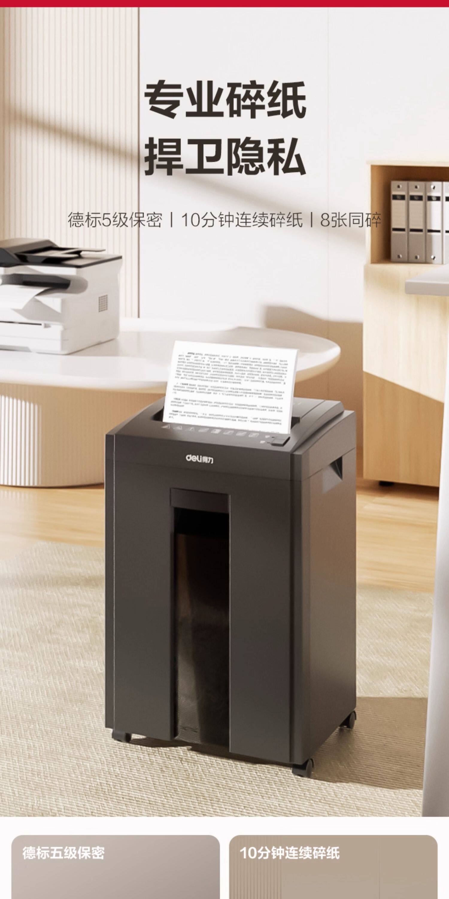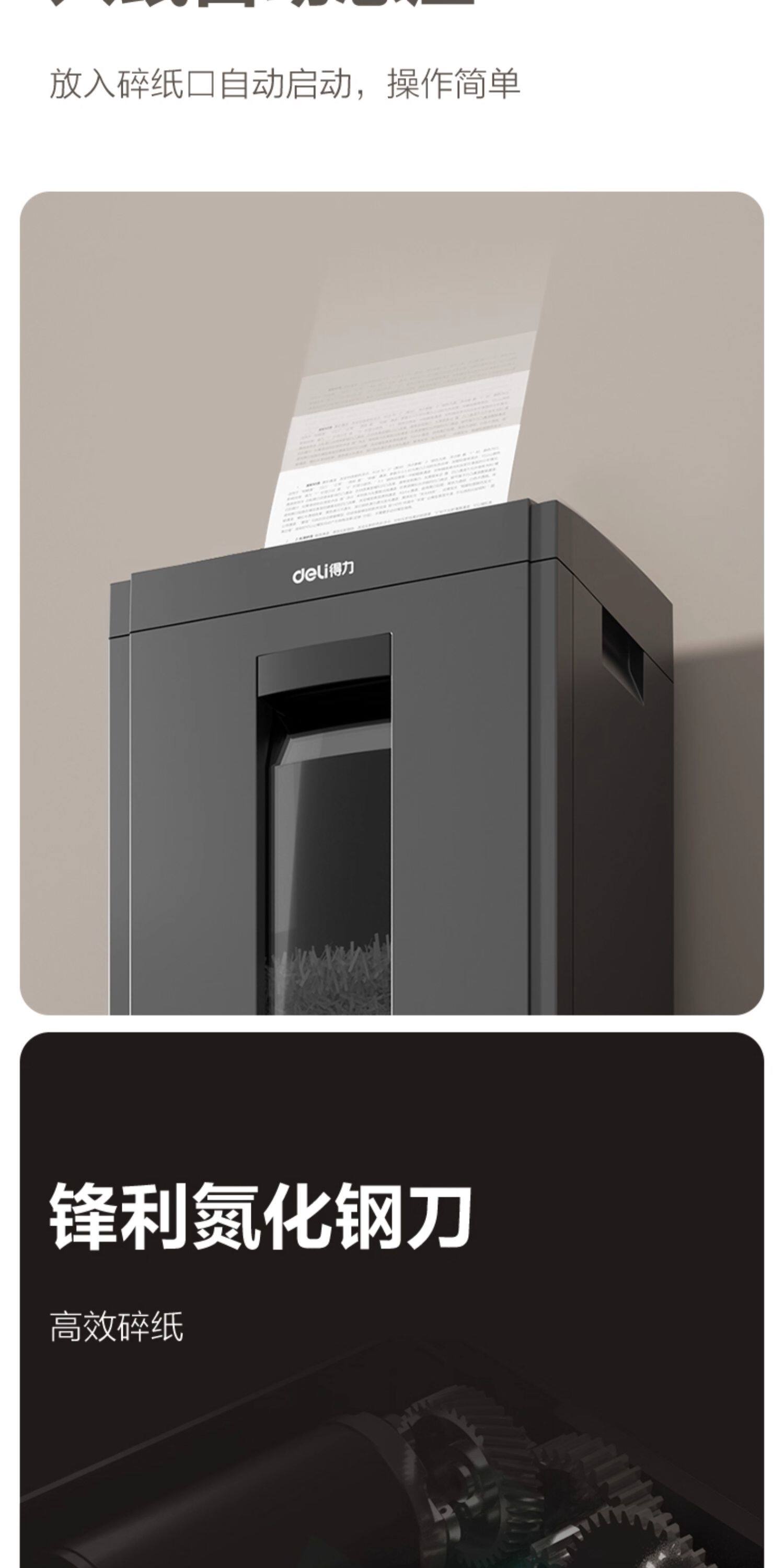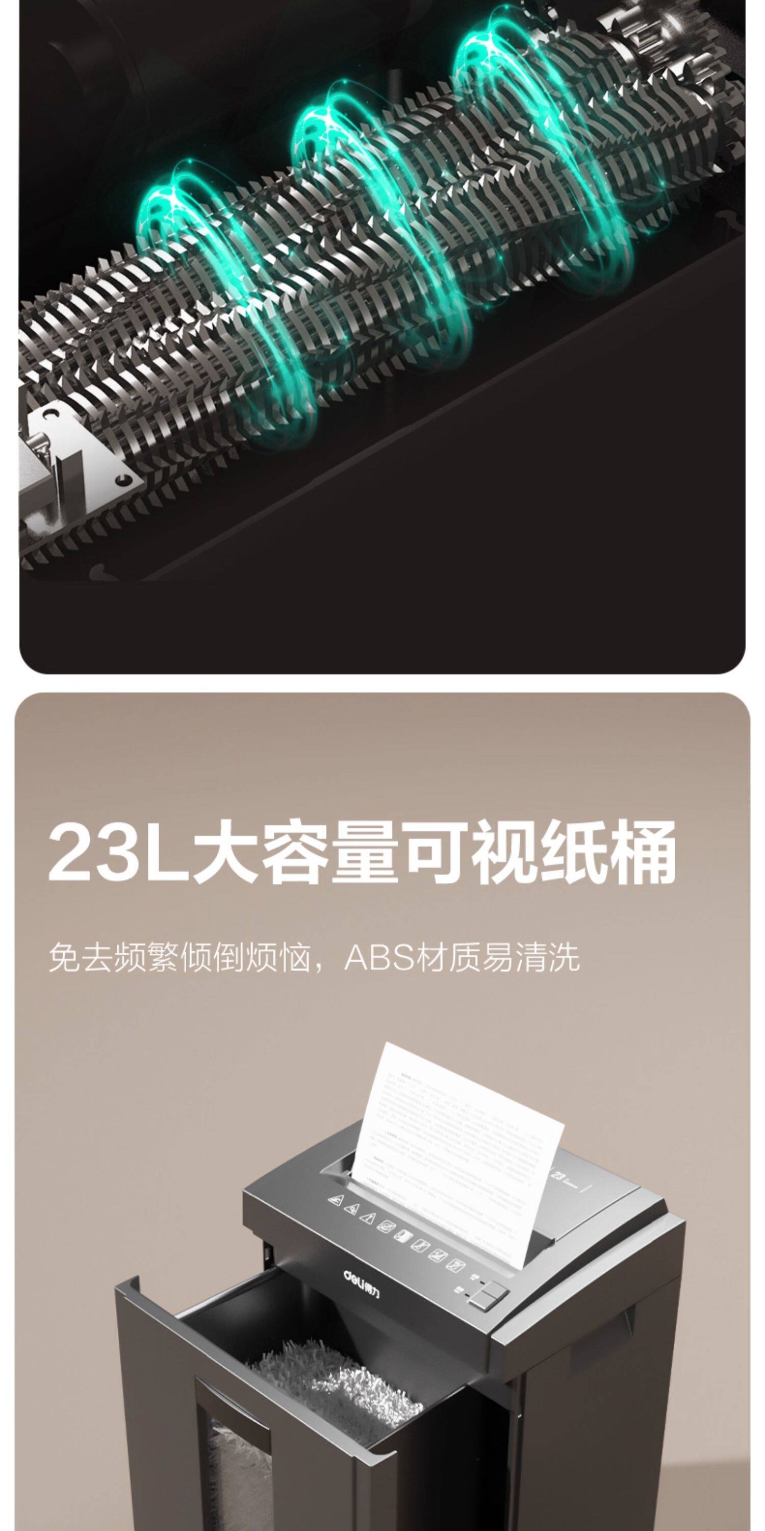 得力5级保密碎纸机商用大功率办公室专用 23L大容量可碎卡碎钉碎光碟