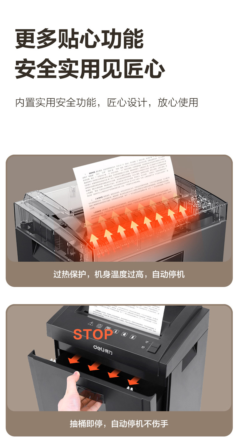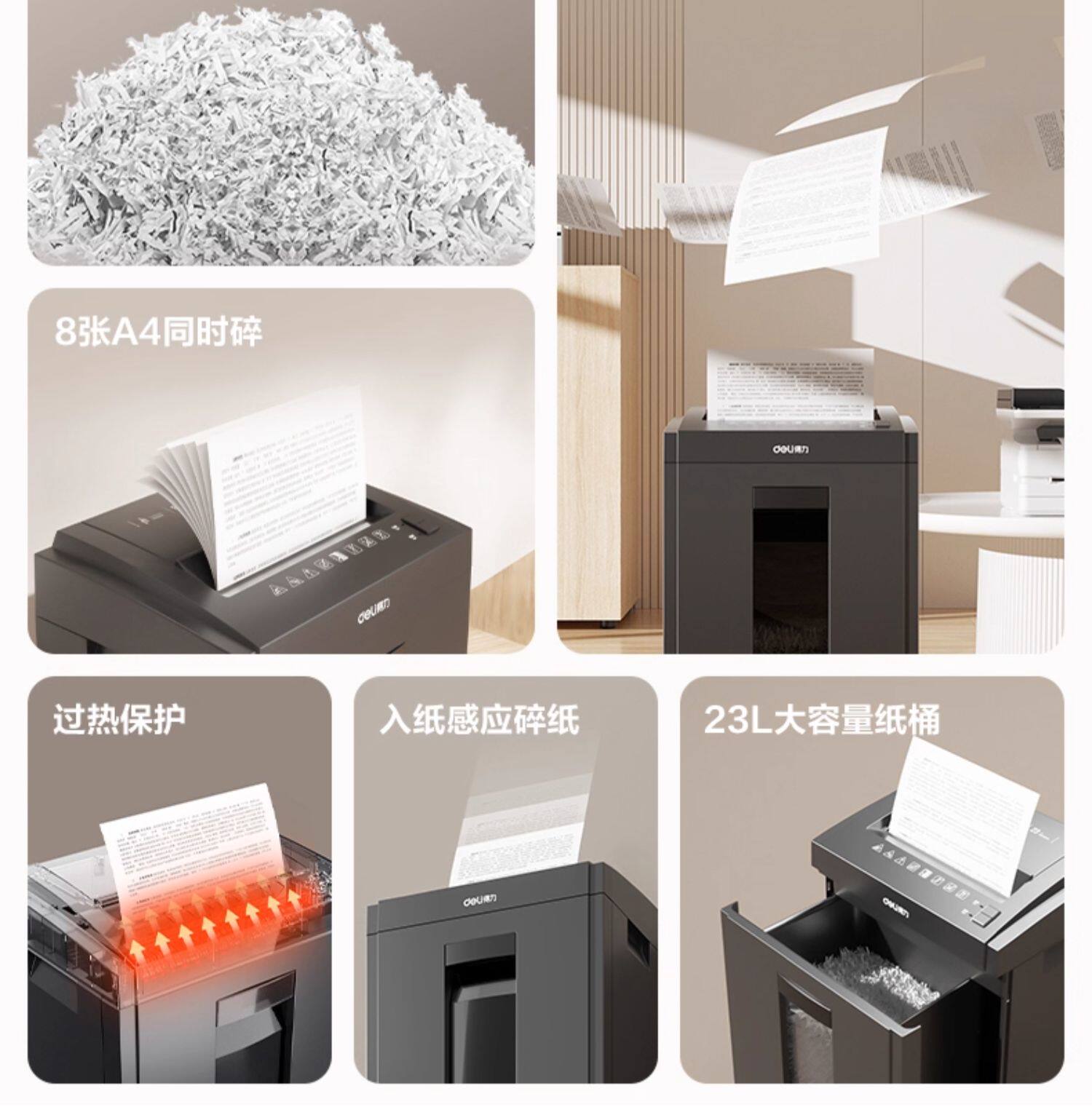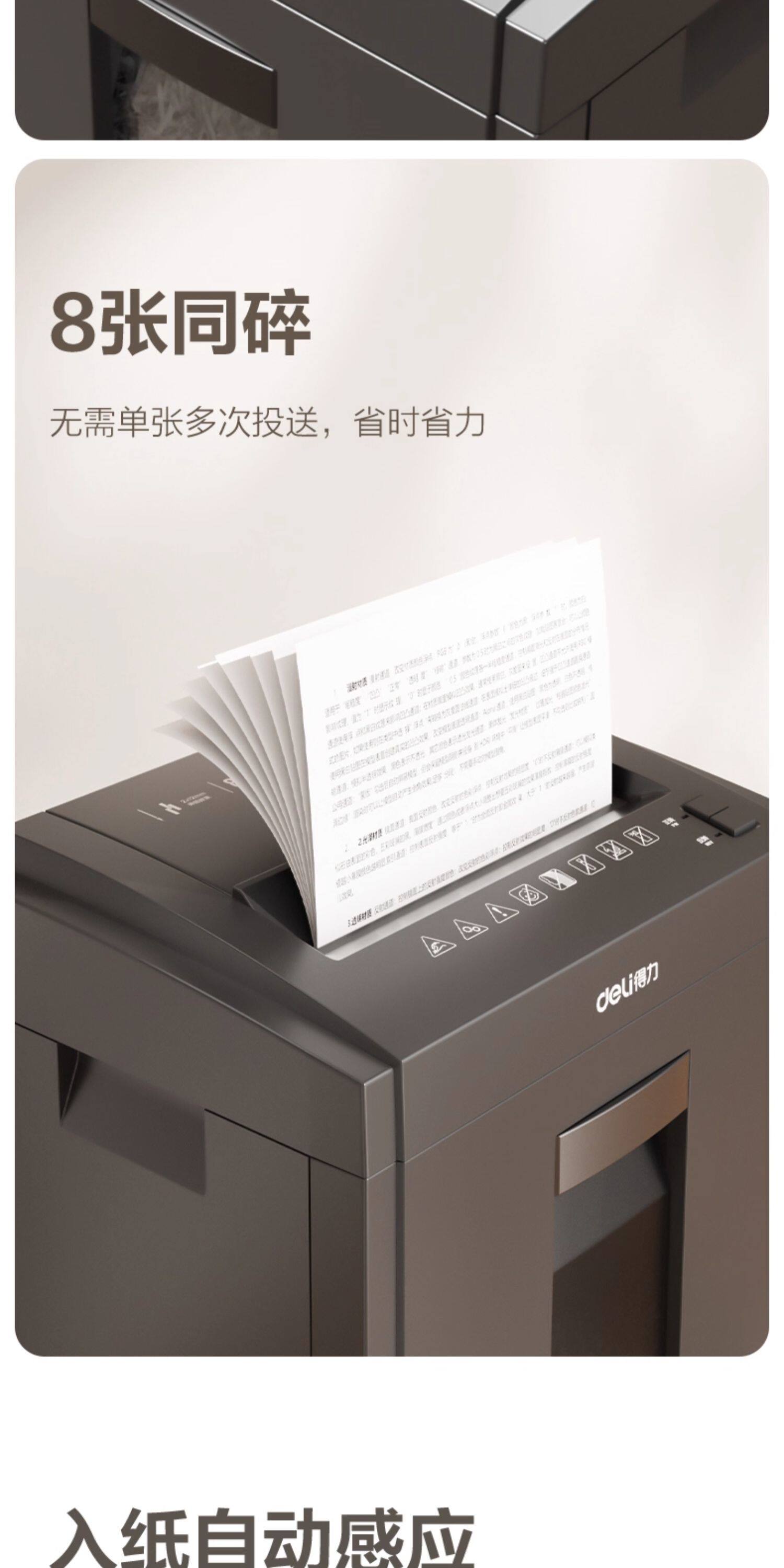 得力5级保密碎纸机商用大功率办公室专用 23L大容量可碎卡碎钉碎光碟