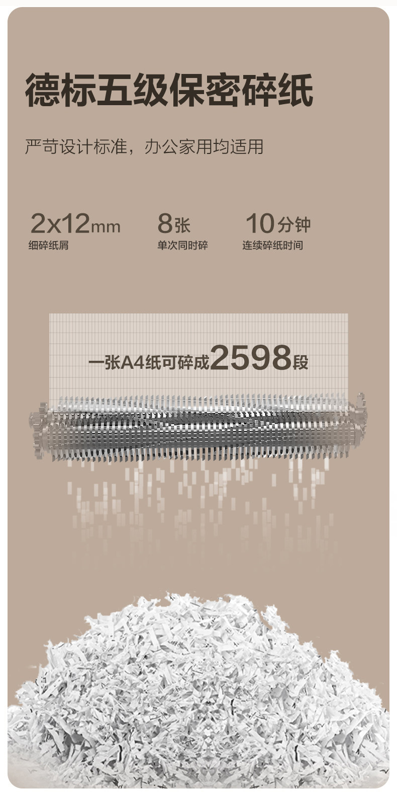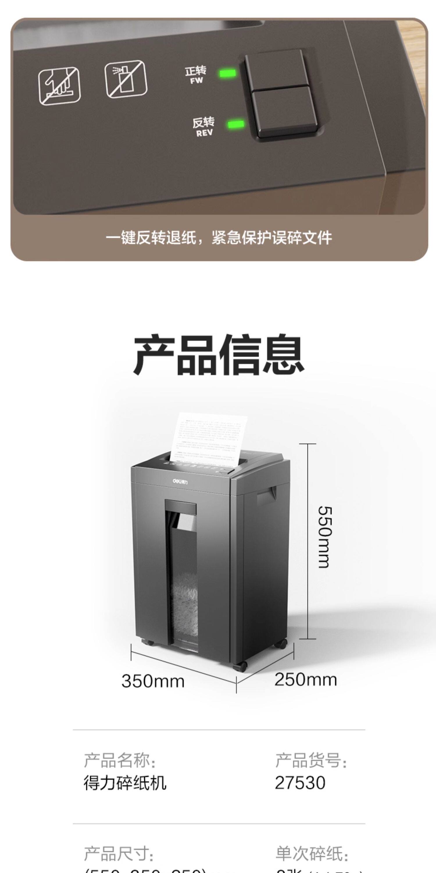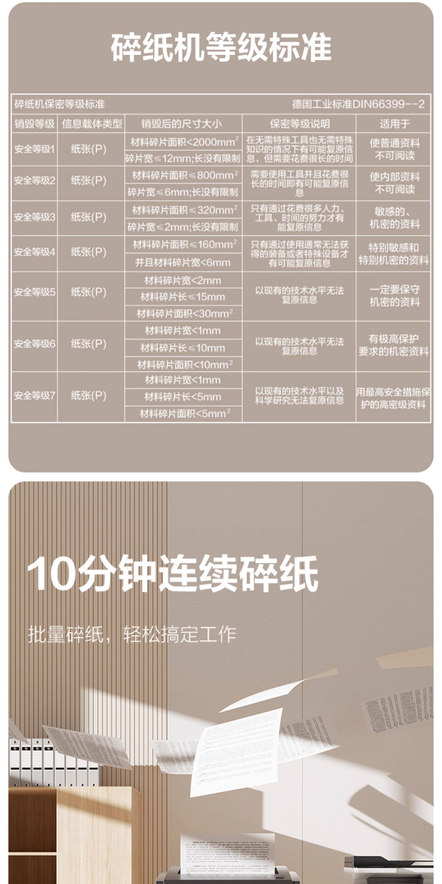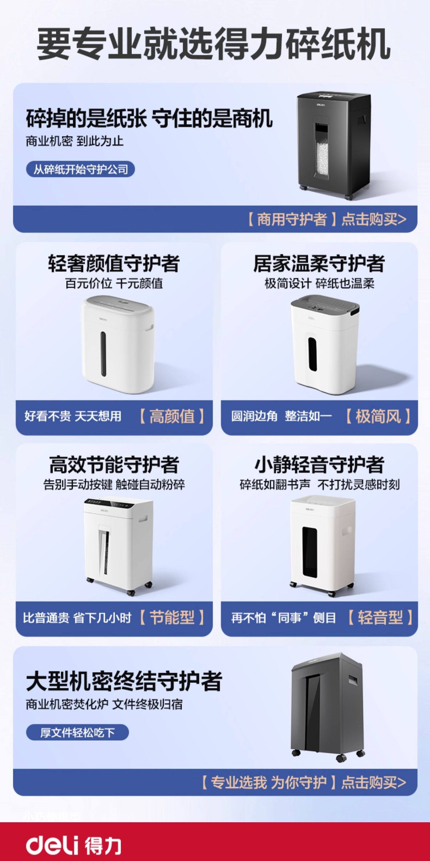 得力5级保密碎纸机商用大功率办公室专用 23L大容量可碎卡碎钉碎光碟
