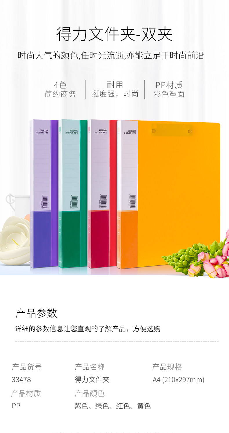 得力文件夹长押夹板夹A4单双强力夹资料夹简历夹试卷夹整理夹办公用硬壳双夹归类强力试卷学生单双夹