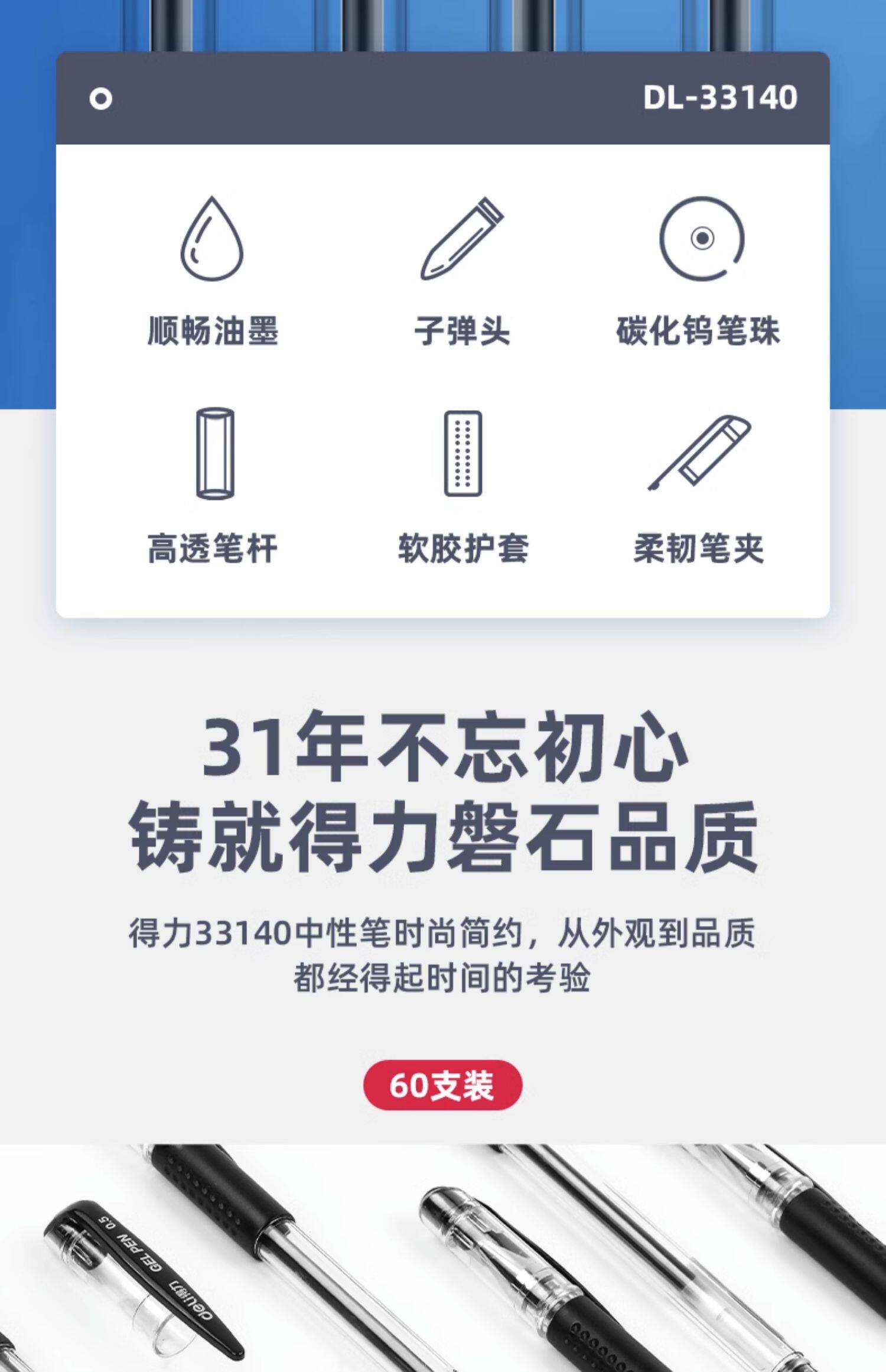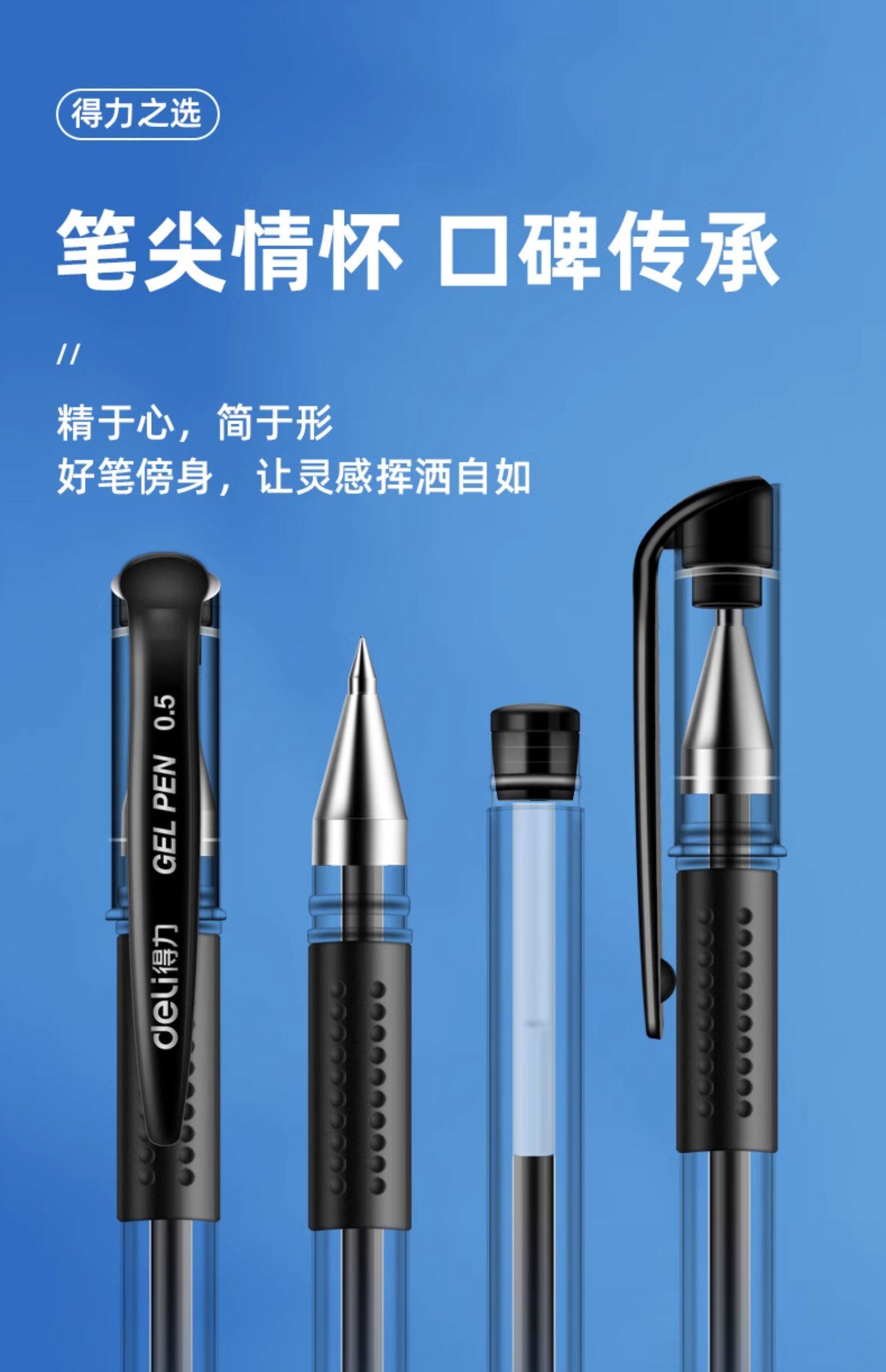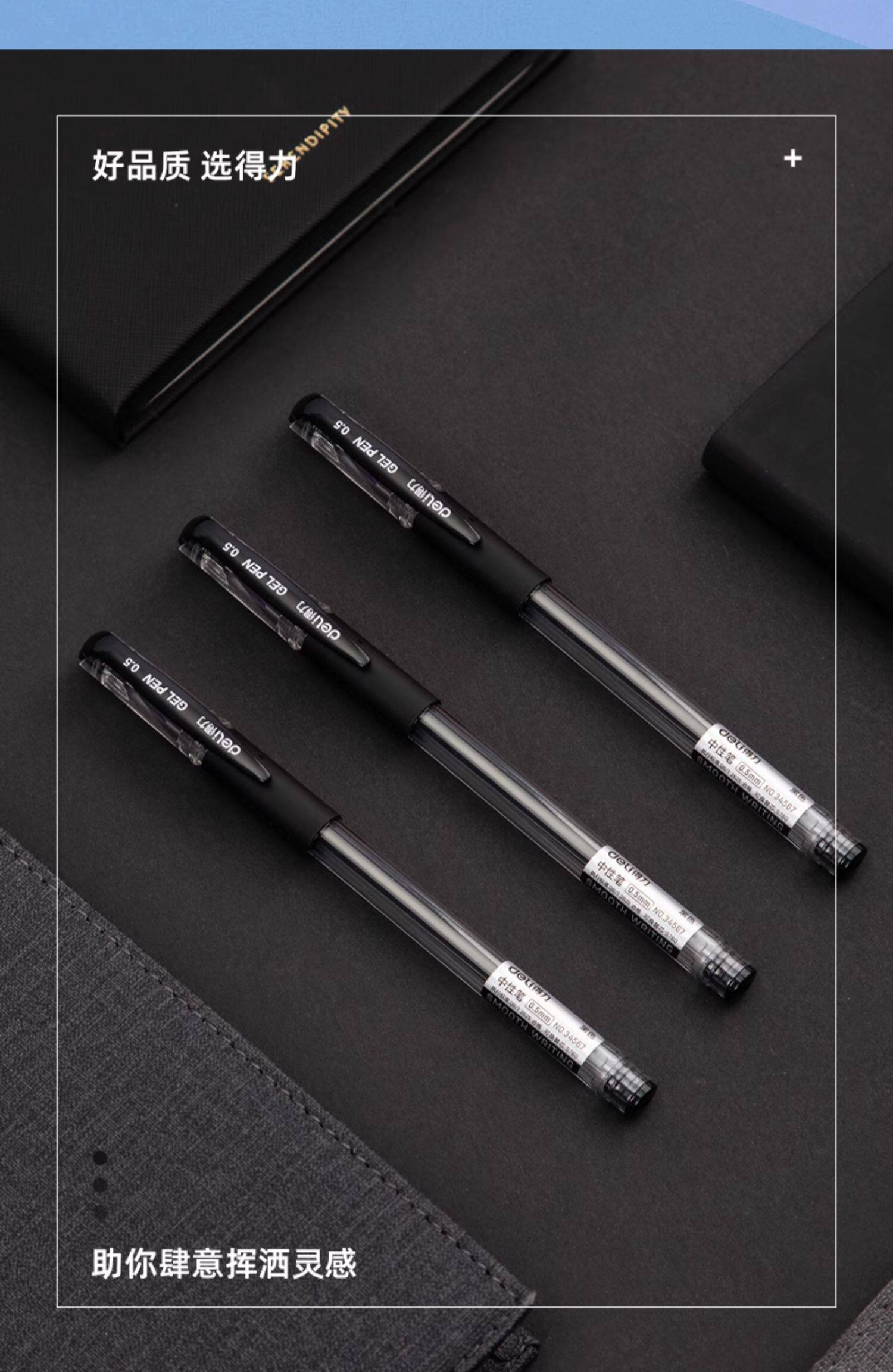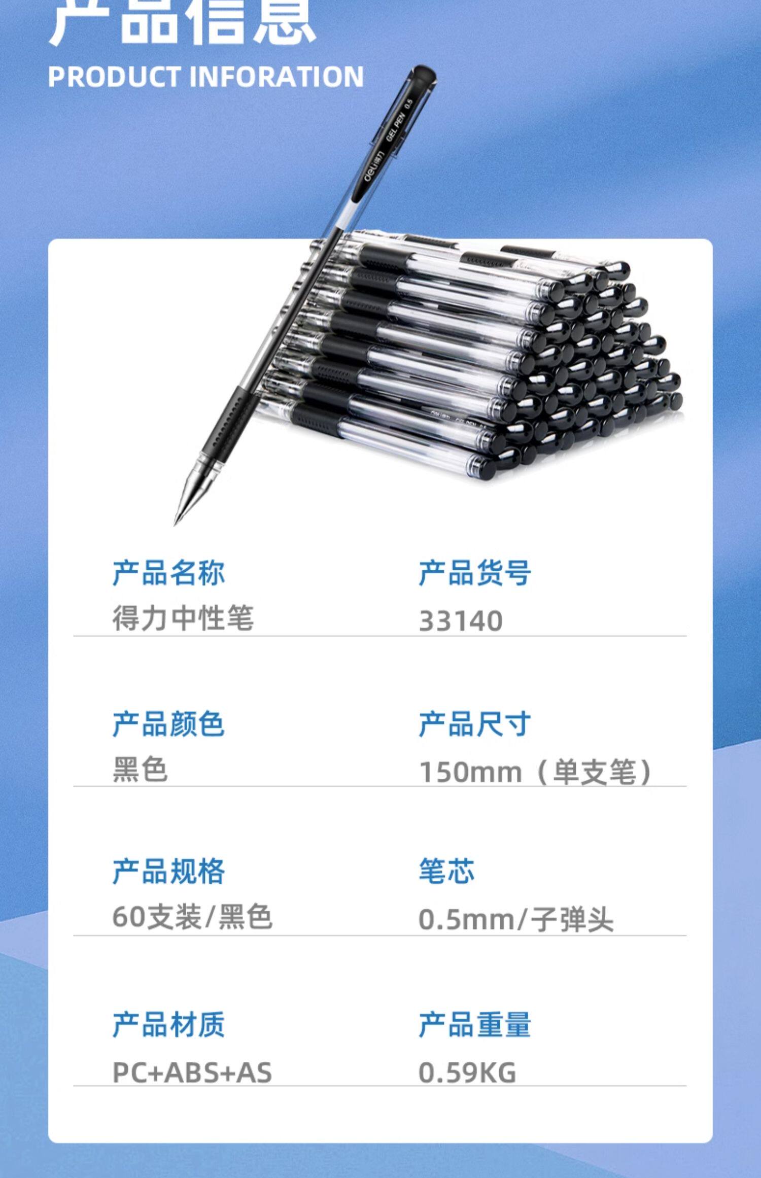 得力中性笔0.5商务办公用品子弹头水笔学生考试刷题笔备考量贩式黑笔签字笔水笔碳素笔书写工具60支装33140