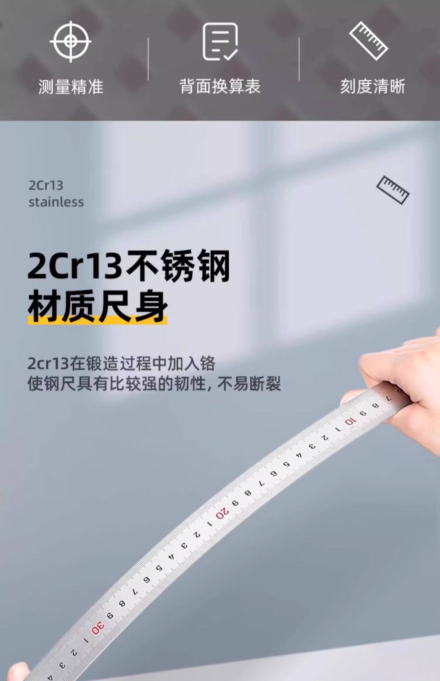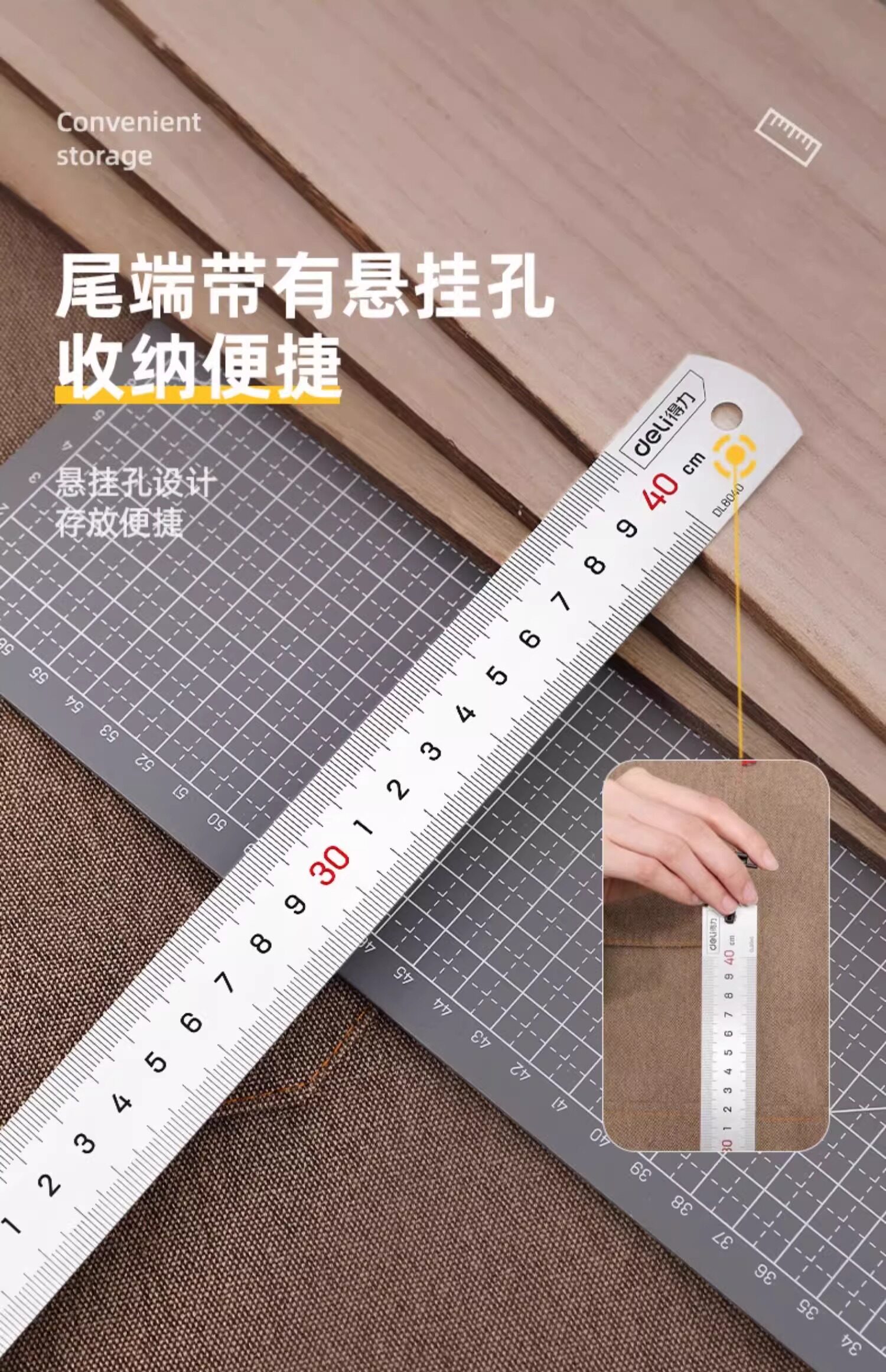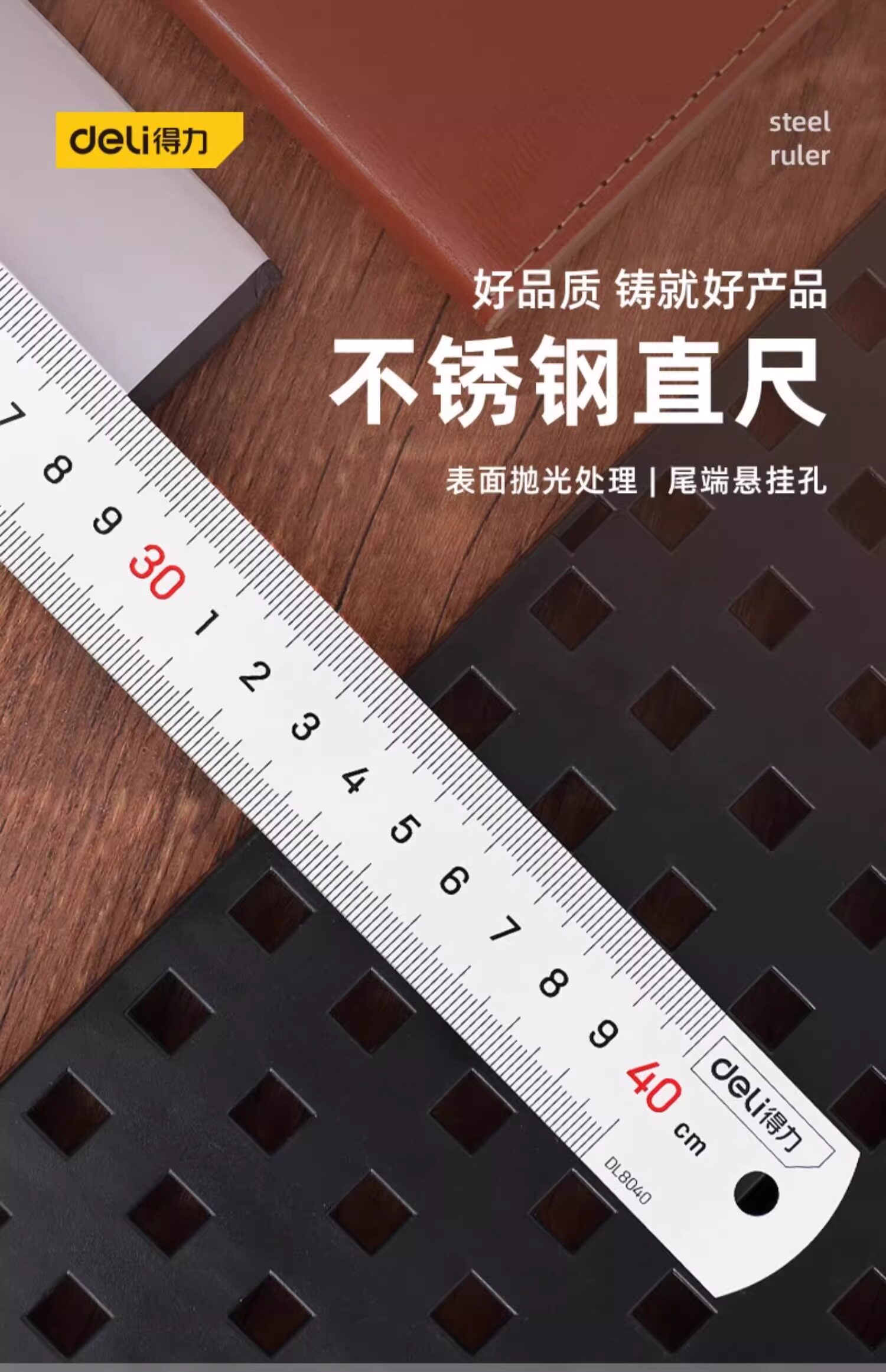 得力钢直尺1米不锈钢直尺硬尺子15cm/30cm/50cm高精度钢板尺加厚铁尺子测量工具划线长钢尺木工用绘图制图