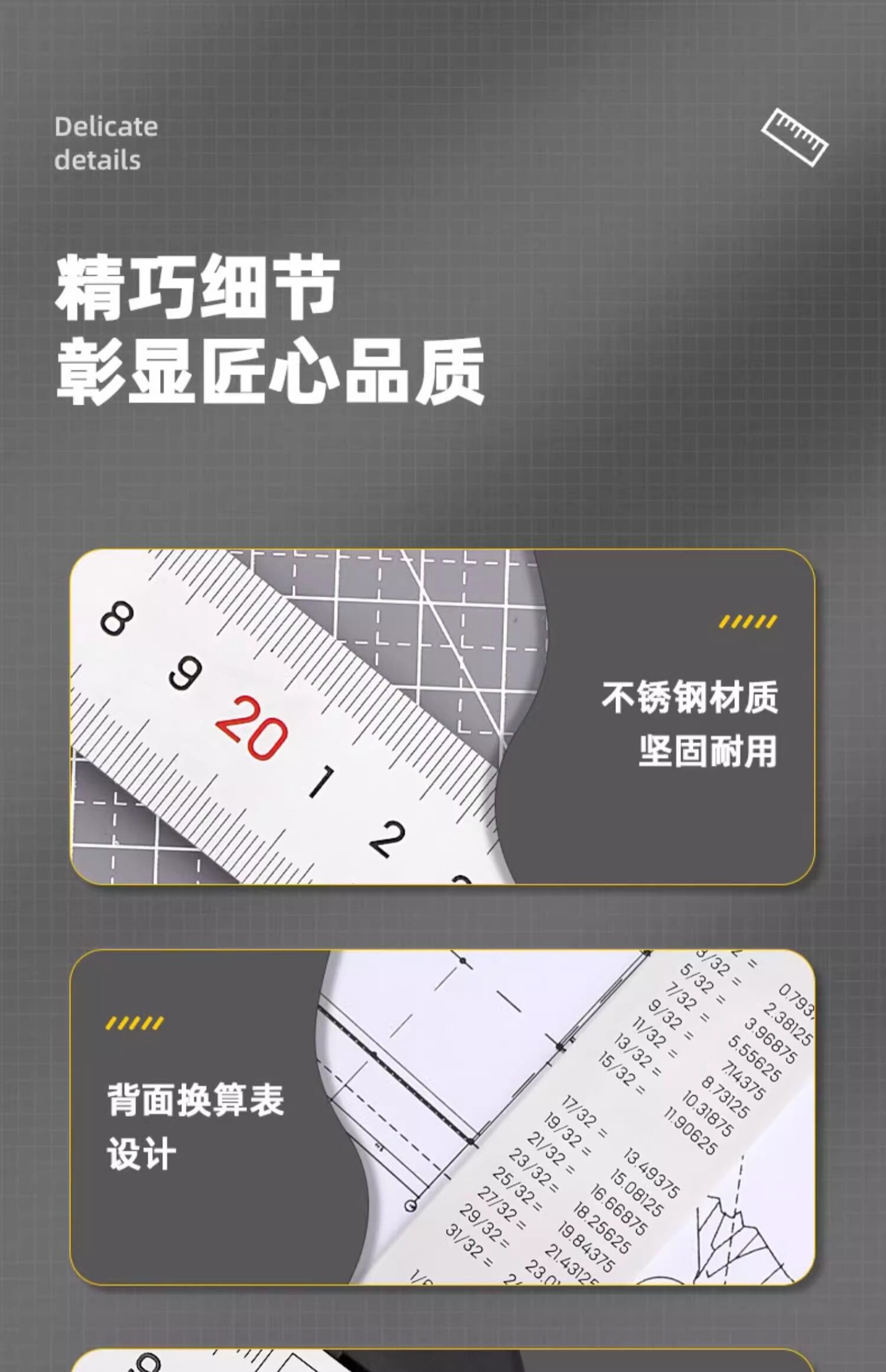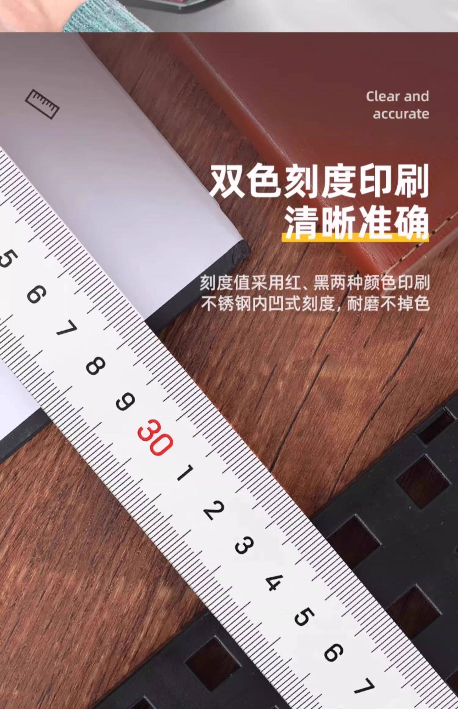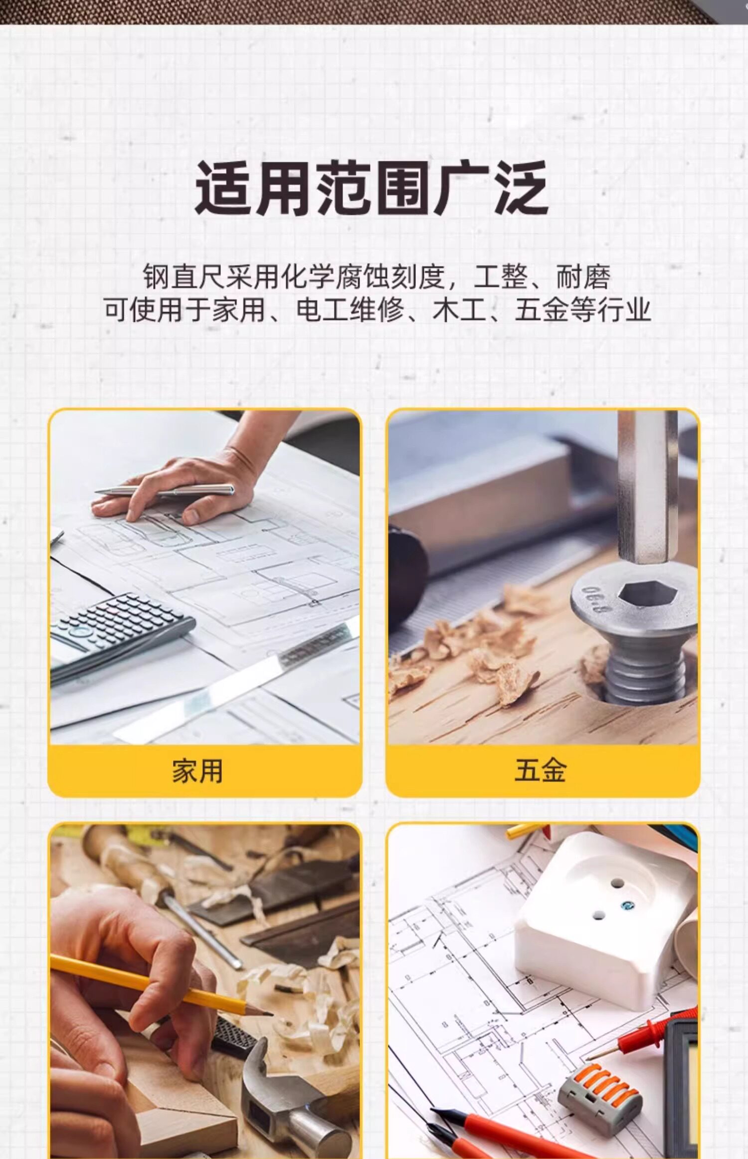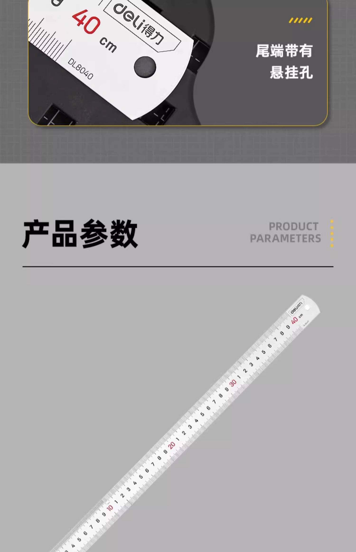 得力钢直尺1米不锈钢直尺硬尺子15cm/30cm/50cm高精度钢板尺加厚铁尺子测量工具划线长钢尺木工用绘图制图