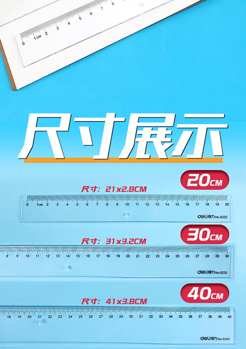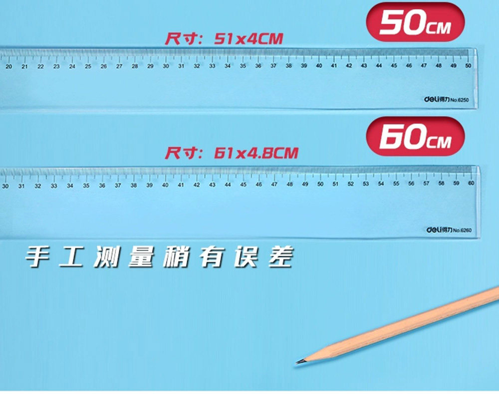 得力透明尺子直尺小学生专用20cm格尺30厘米木工塑料直尺40cm亚克力绘图绘画尺50cm60cm教师用大长划线尺文具