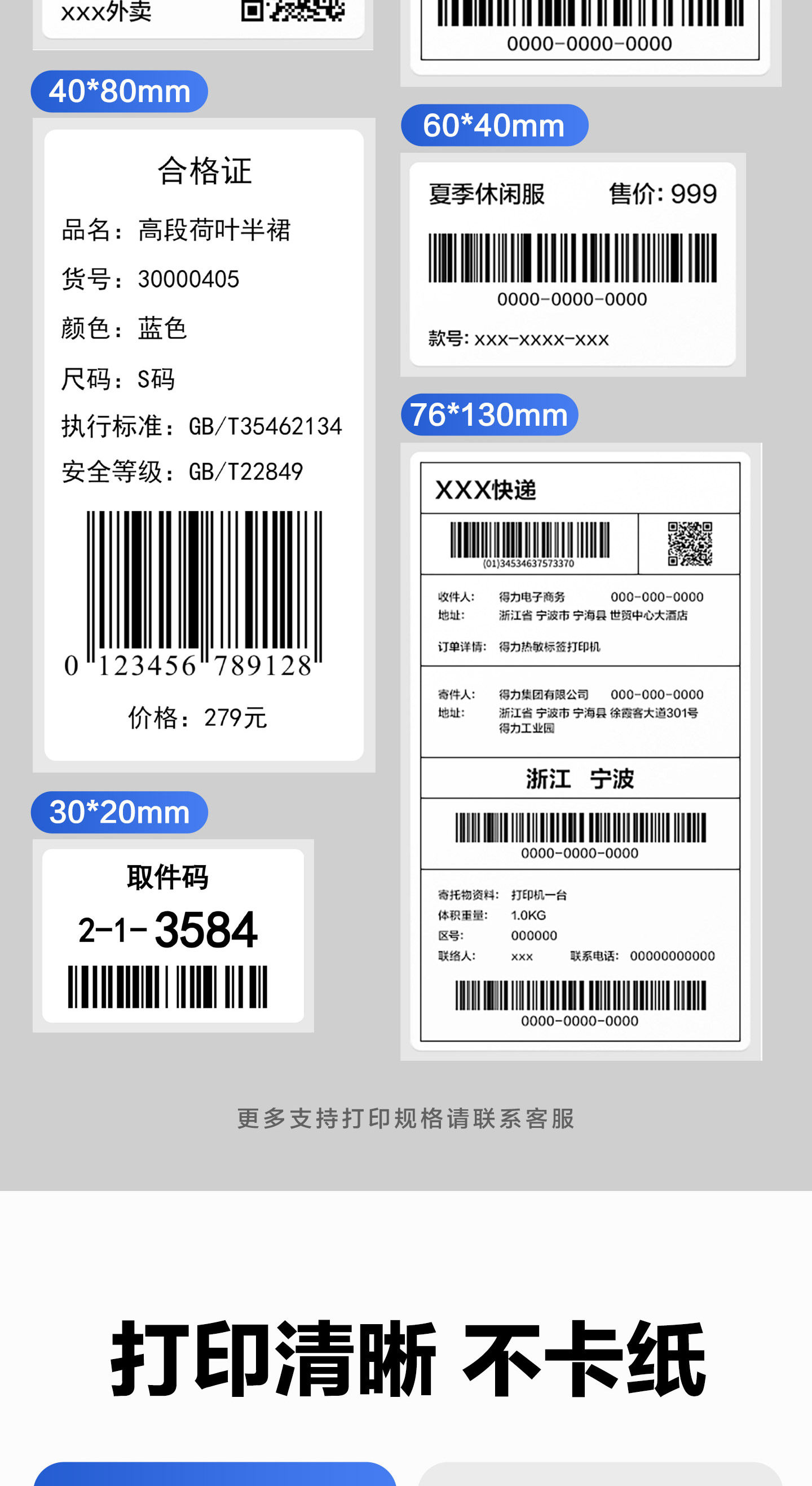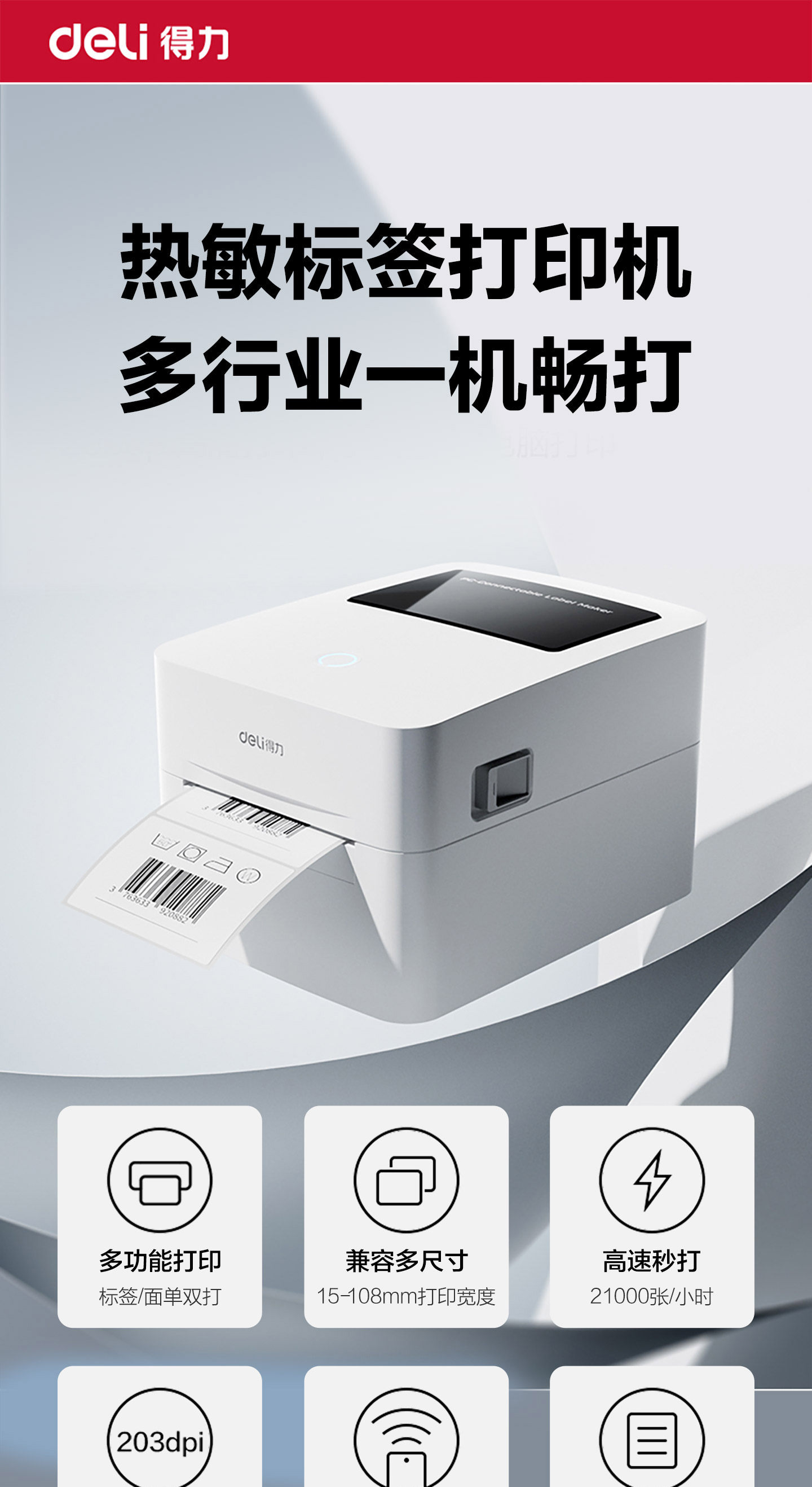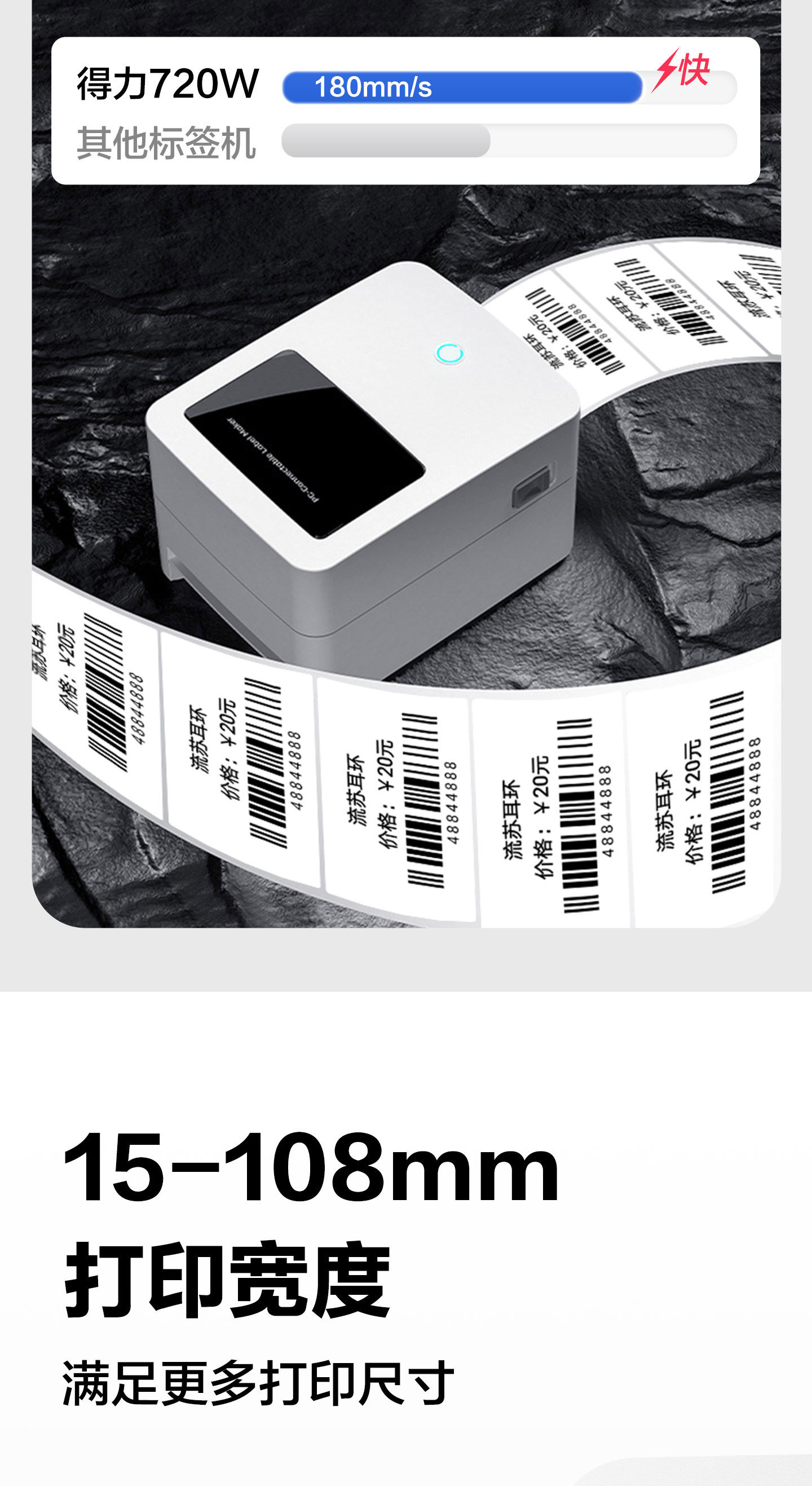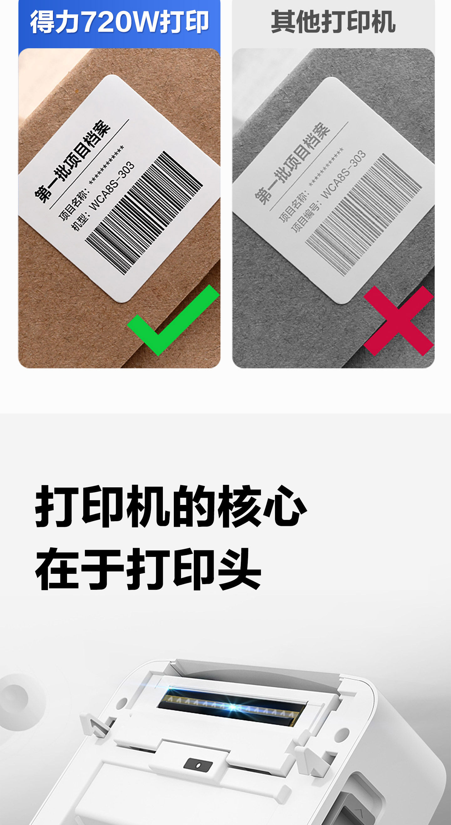 得力热敏标签打印机不干胶条码热敏纸打印机720W蓝牙小型商用快递单合格证食品价签日期吊牌贴纸多功能打标机